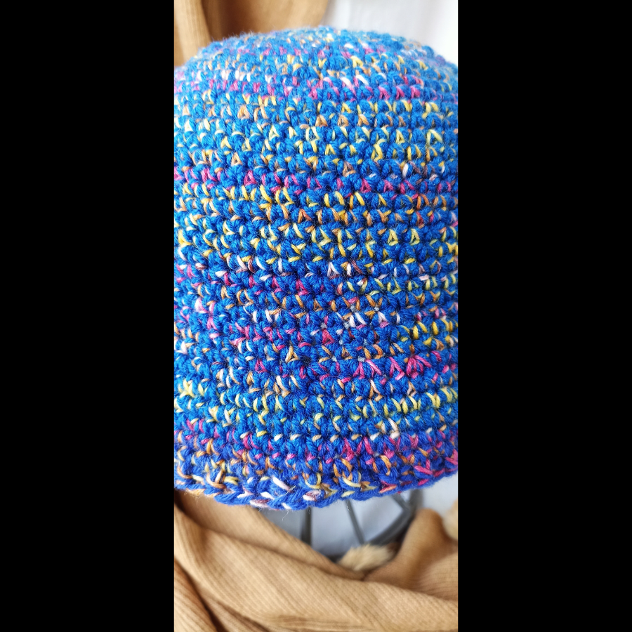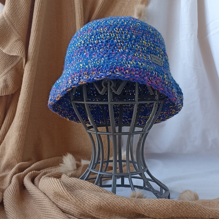 Ručně háčkovaný klobouk z jemné příze s melírovaným efektem. Každý kus je originál – barevná kresba se může lehce lišit, což dělá každý klobouk jedinečným. Klobouk je lehký, měkký a pohodlný na nošení, drží tvar a přirozeně se přizpůsobí hlavě.