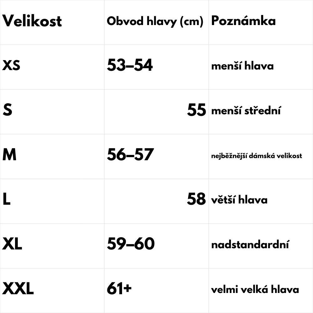 Naměřený obvod porovnej s tabulkou velikostí. Pokud jsi na hranici dvou velikostí, doporučuje se zvolit větší, aby čepice nebyla těsná.