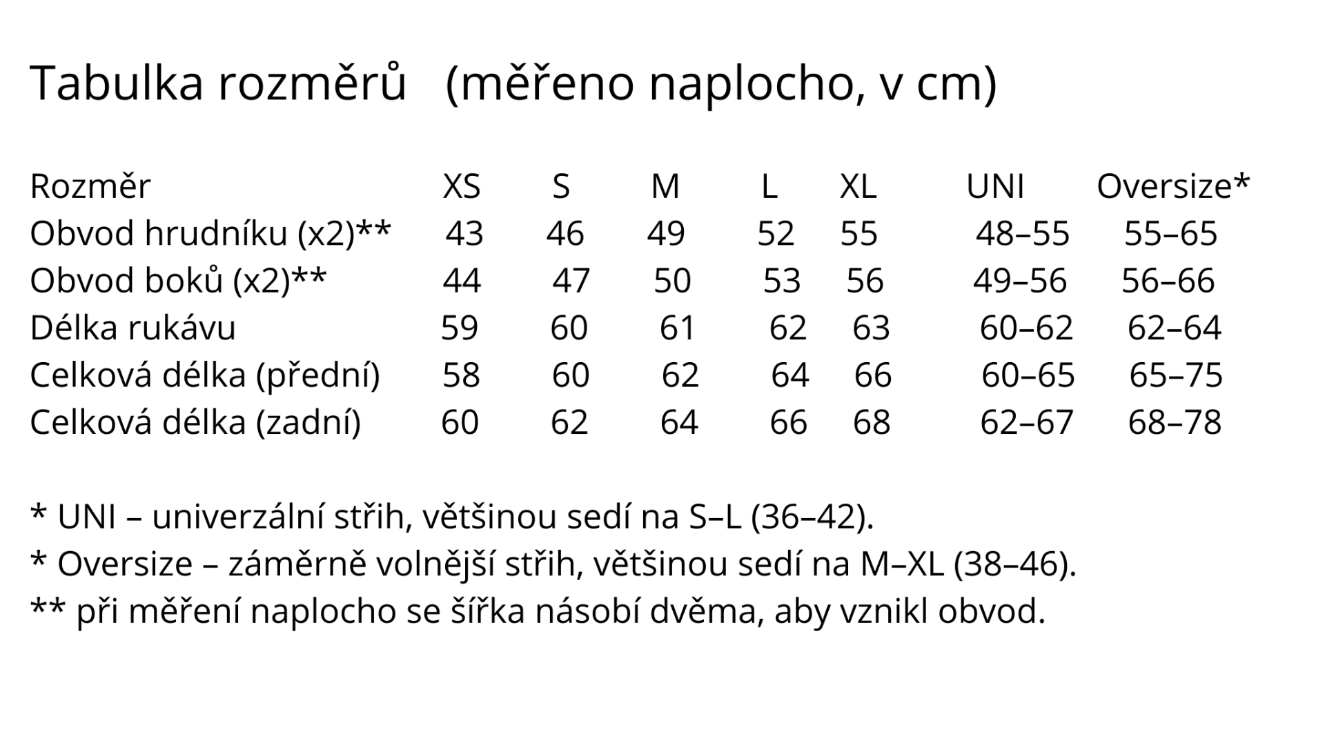 U střihů UNI a Oversize